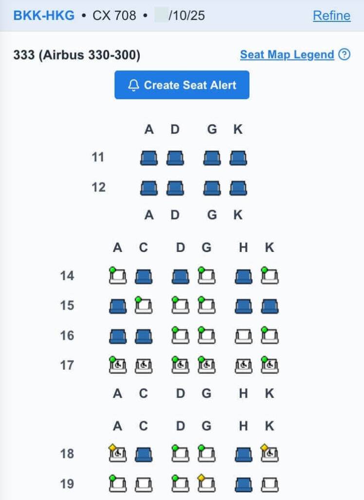 キャセイパシフィック航空の公式サイトで確認した空席と同じですね。