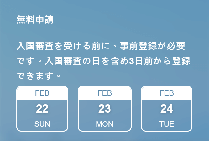 申請は、到着日の2日前から可能に変わりました。