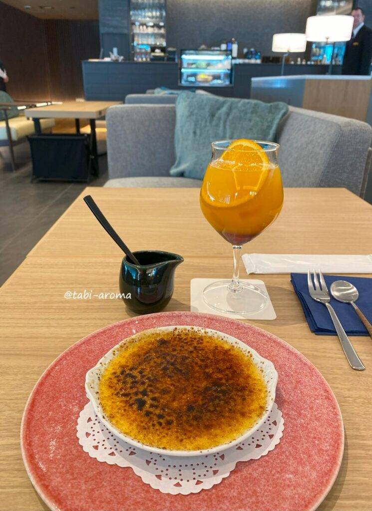 お昼にハンバーガーを食べようと思っていたのですが、朝食を食べ過ぎて入る余地がありません。なので、軽めに、大好きなクリームブリュレと季節の飲み物・アールグレイブロッサムにしてみました。