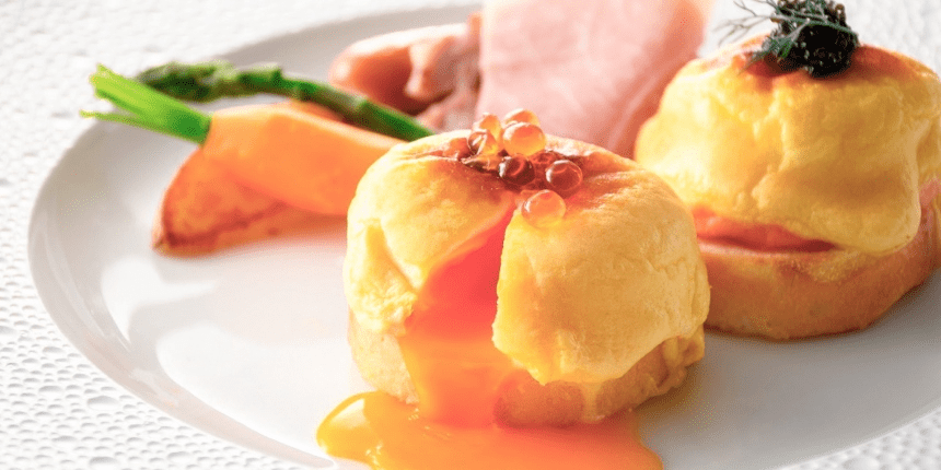 さらに、追加料金(+1,265円~3,163円)で、朝食だけのスペシャリテも用意してもらえます。上の写真は「エッグ・ベネディクト」。自家製のスモークサーモンとポーチ・ド・エッグを、オランデーズソースで仕上げたお料理です。