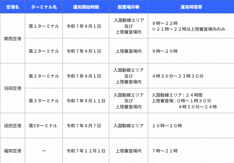 2023年6月26日現在、成田国際空港にも東京国際空港(羽田)と同様の電子申告端末が導入されていました。2025年5月現在、第3ターミナルのみ「共同キオスク」が設置されました。