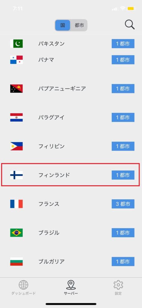 今回は、フィンランドで利用したので、フィンランドを選びました。