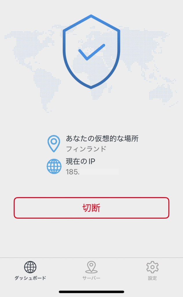 フィンランドに着いたあと、「接続」をタップして早速繋いでみました。