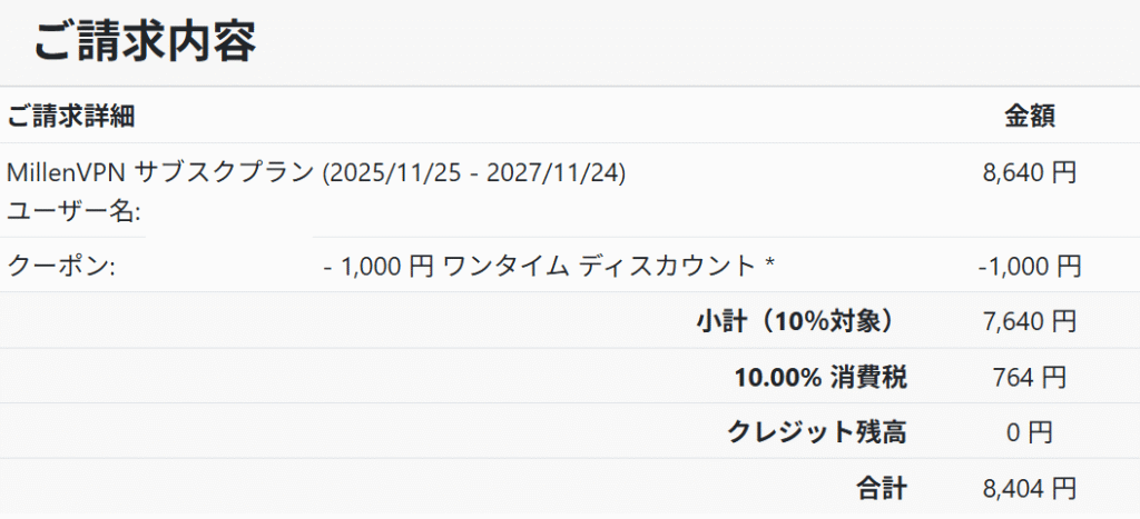 サブスクプランのMillenVPN 2年プラン / 1年プランのみ対象