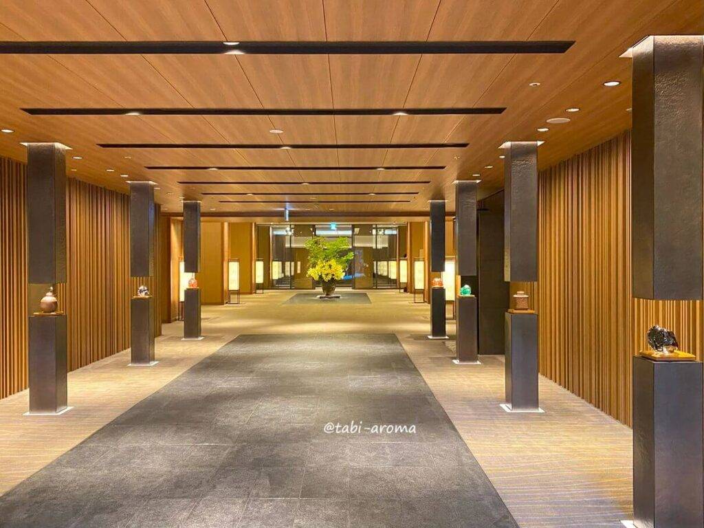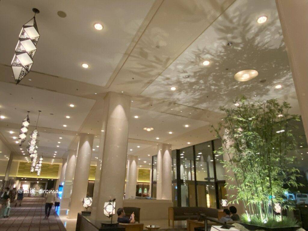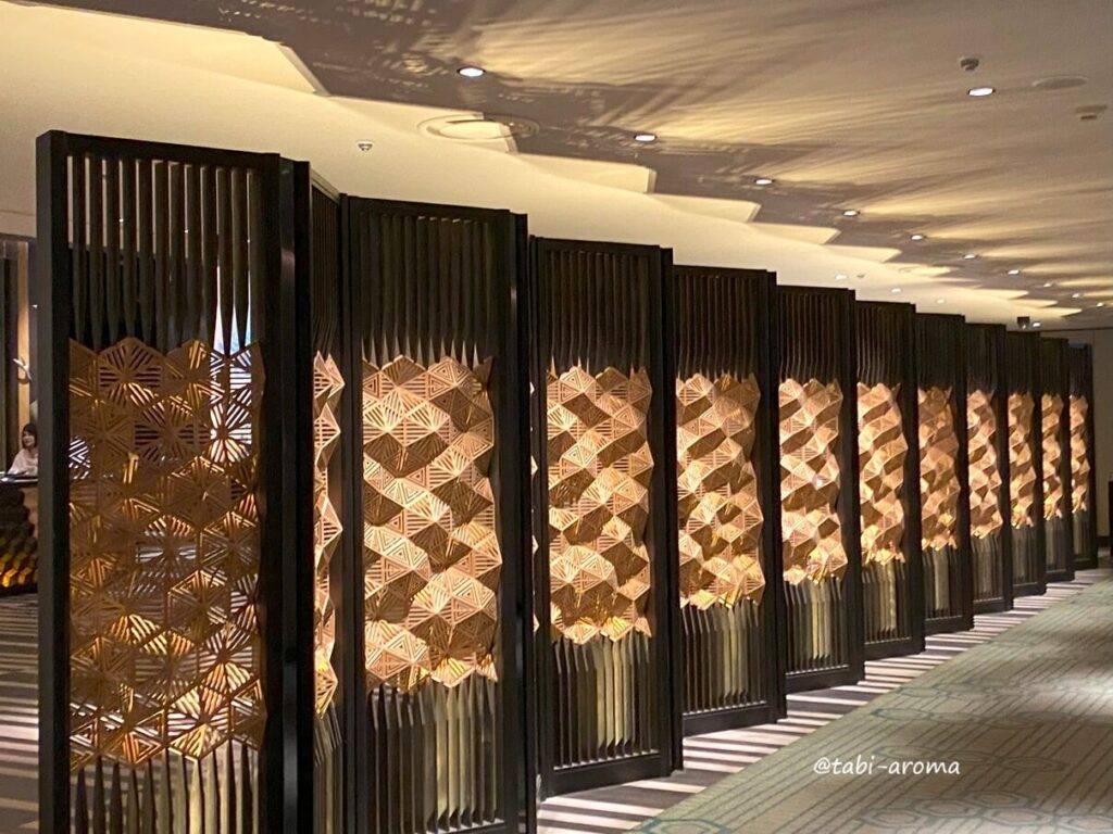 グランドプリンスホテル新高輪は、1982年4月25日に開業しました(当時の名前は、新高輪プリンスホテル)。その後改装され、ロビーには、京指物(きょうさしもの)職人の手による六角形の亀甲格子がふんだんにあしらわれ、和の雰囲気を醸し出しています。