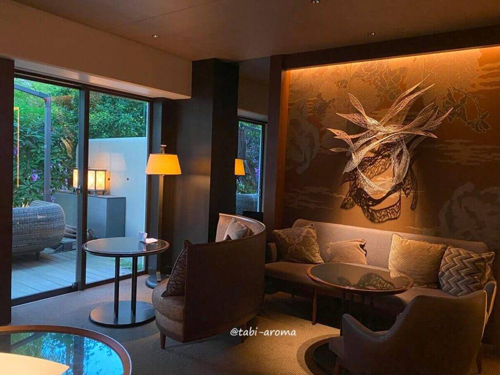 グランドプリンスホテル新高輪からは、日本庭園を散策しながらやって来ました。1階にあるので、移動が簡単ですね。ちなみに、このラウンジ花雅のそばにセブンイレブンがあります。