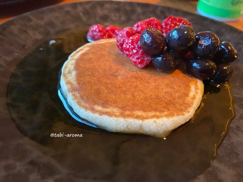 メイプルシロップをかける機械があったのですが「出てこない・・・」と思って何度もレバーを押していると、暗くて見えていなかっただけで、たくさん出ていました。なので、メイプルシロップ付けになってしまいました・笑。