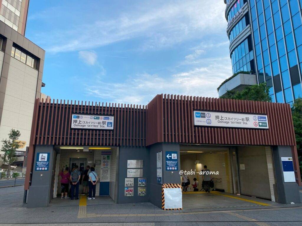 「押上駅」真正面なので、横断歩道を渡るだけで到着します。東京スカイツリーやすみだ水族館もすぐそばにあるので、観光にもおすすめの場所です。