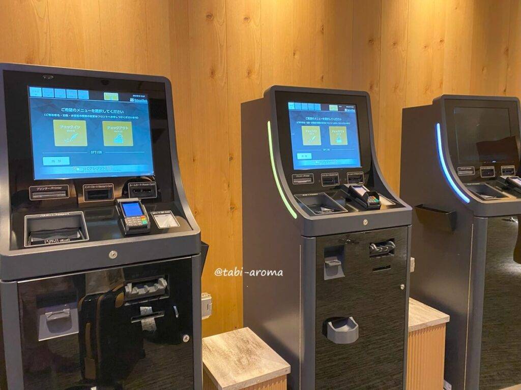 フロントには機械が並んでいますが、スタッフの方も大勢いるので、機械を使うことはありませんでした。この、スタッフの方がいらっしゃったことが後々私のミスをカバーしてもらえることに・・・。