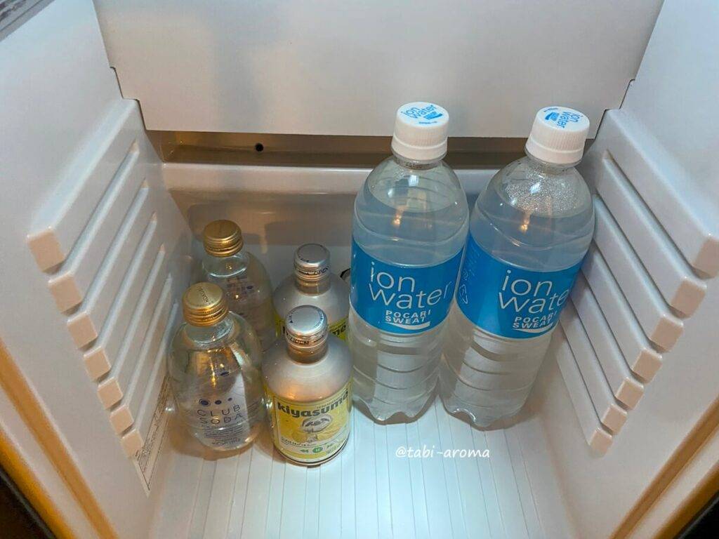 保冷庫の中には、無料のソーダウォーターなどが用意されていました。冷蔵庫ではなく保冷庫なのですが、スーパーで買ってきた冷たいビールもうまく保冷できていました。いや~、本当に至れり尽くせりです。