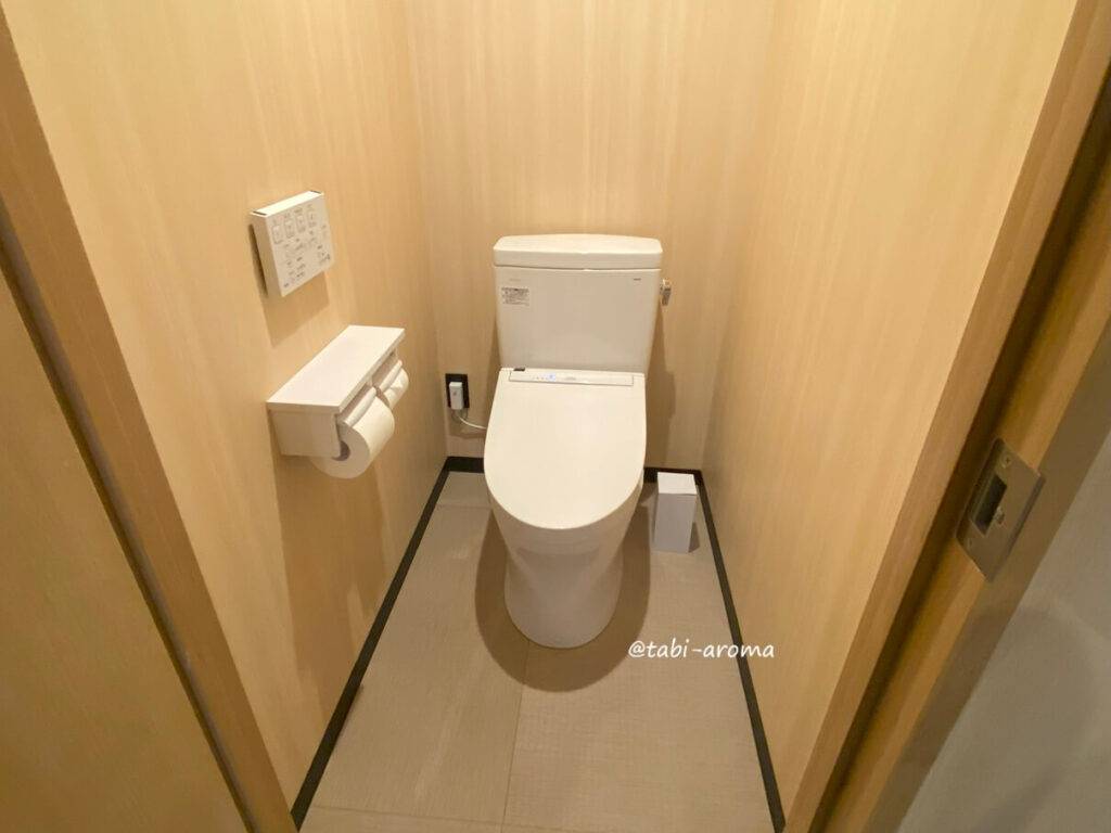 お手洗いは、サウナ付き浴室の手前にある広めの個室。