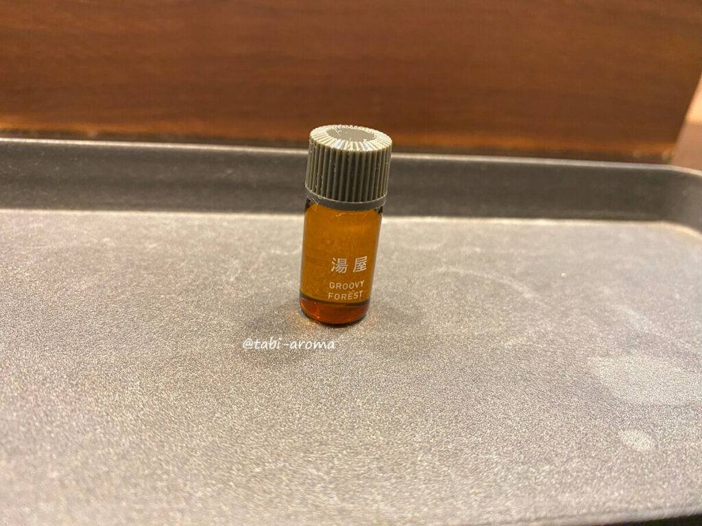 精油をお水に入れて、そのお水を柄杓ですくってサウナストーンにかける、ロウリュ(フィンランド語: löyly)もできます。ブレンドだったので細かな芳香成分は分かりませんが、ウッディ系の落ち着く香りでした。