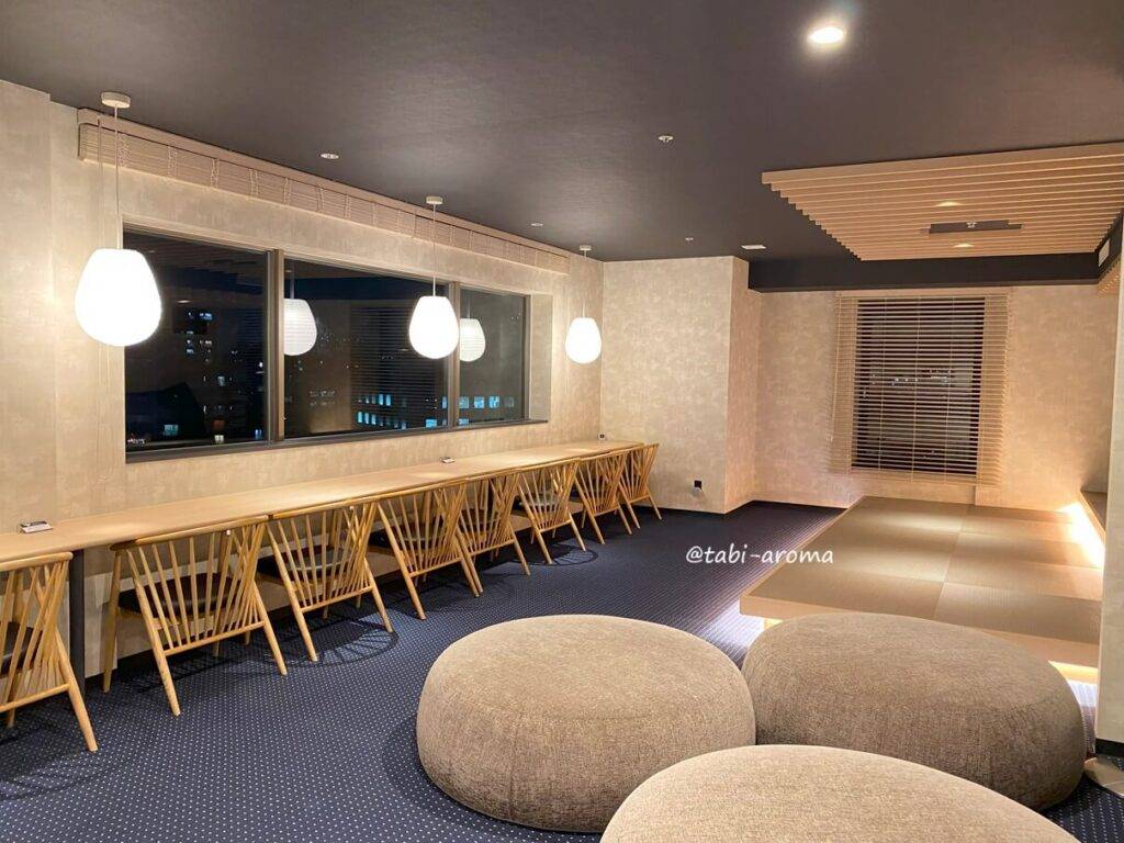 ところで、ホテルのロビー階(5階)には、有料の SHARE LOUNGEが入居しています。今回は、このラウンジも利用できるプランでした。
