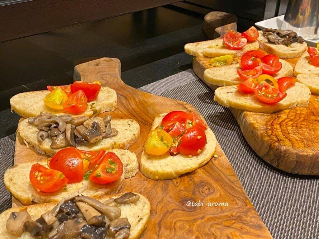 スチームトースターもあり、自分で水を入れて、ブルスケッタを温めることもできました。