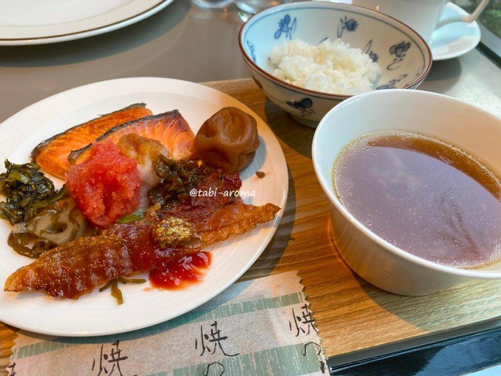 和食のおかずは、肉じゃがや焼き魚がありました。ご飯のお供も充実しています。
