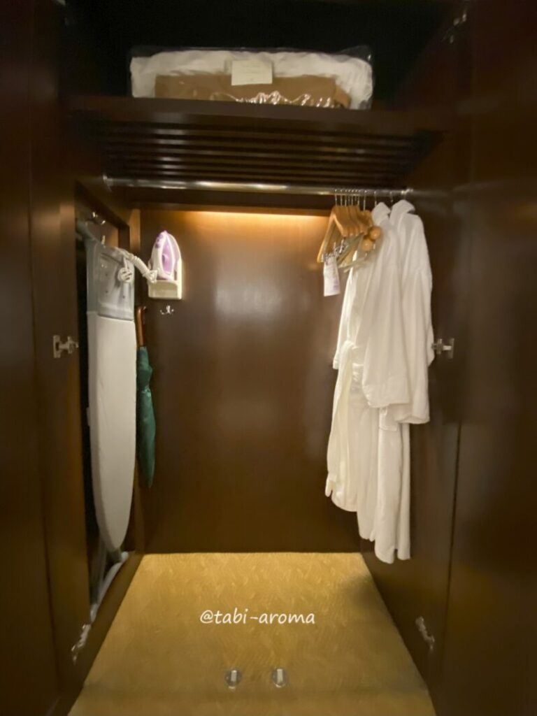 部屋の入り口にあるクローゼットも大きく、アイロンやアイロン台も常備されていました。