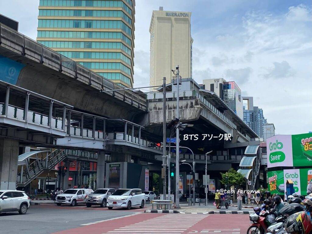アソーク駅までは横断歩道を渡ればすぐですが、どちらかと言えば(横断歩道を渡らなくていい分)地下鉄のスクンビット駅の方が近い感じです。建物の中から地下鉄の駅にアクセスすれば、雨が降っていても濡れずに移動できます。