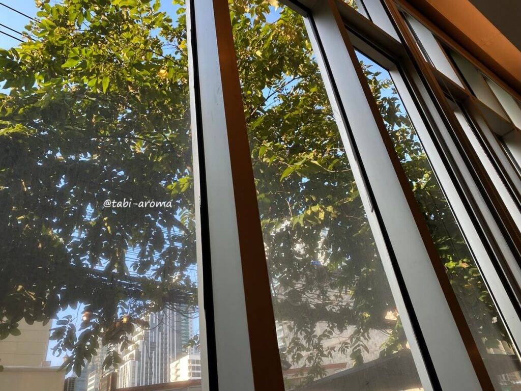 すぐ隣にコンドミニアムがあるので目隠しになっていいのですが、ちょっと圧迫感がありました。なので、カーテンを半分開けただけで過ごすことにしましたが、これだけがここのマイナスポイントでした。