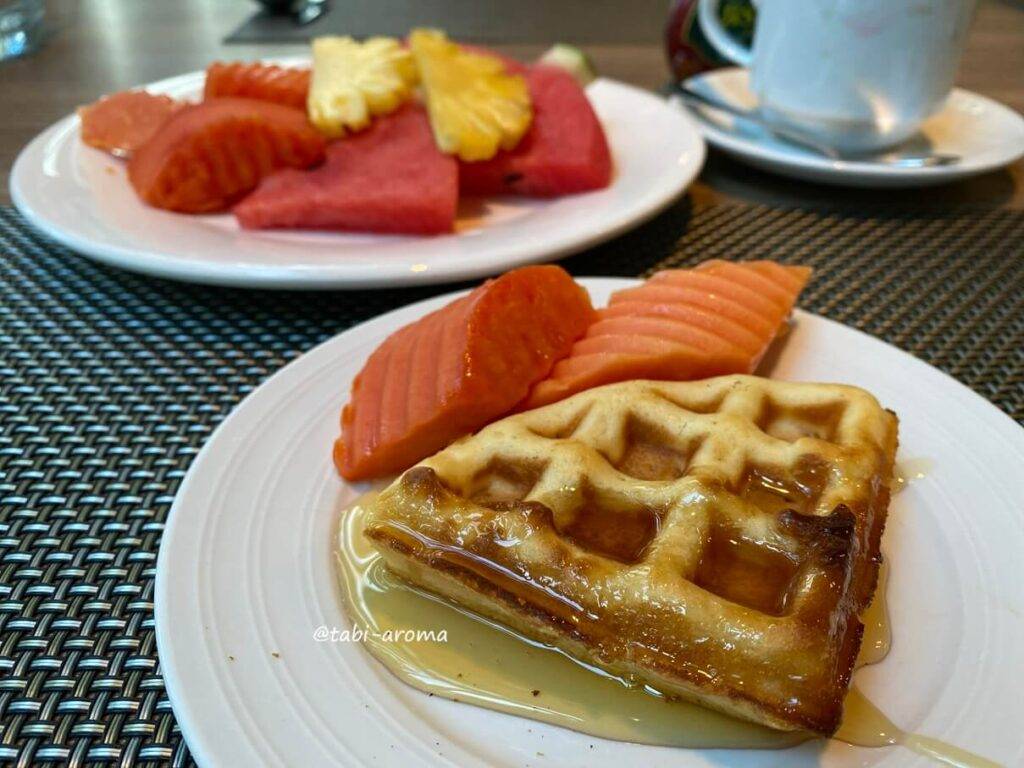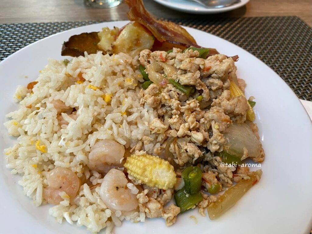 味覚は十人十色なのですが、個人的には美味しいと感じました。フルーツや温かいお料理のメニューが毎日少しずつ変わりますので、連泊しても問題ないと思います。特に2日目の海老ピラフでガパオライス風が一番好みの味で、ずーっと食べていたかったです。盛りすぎ・笑。