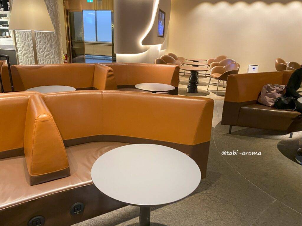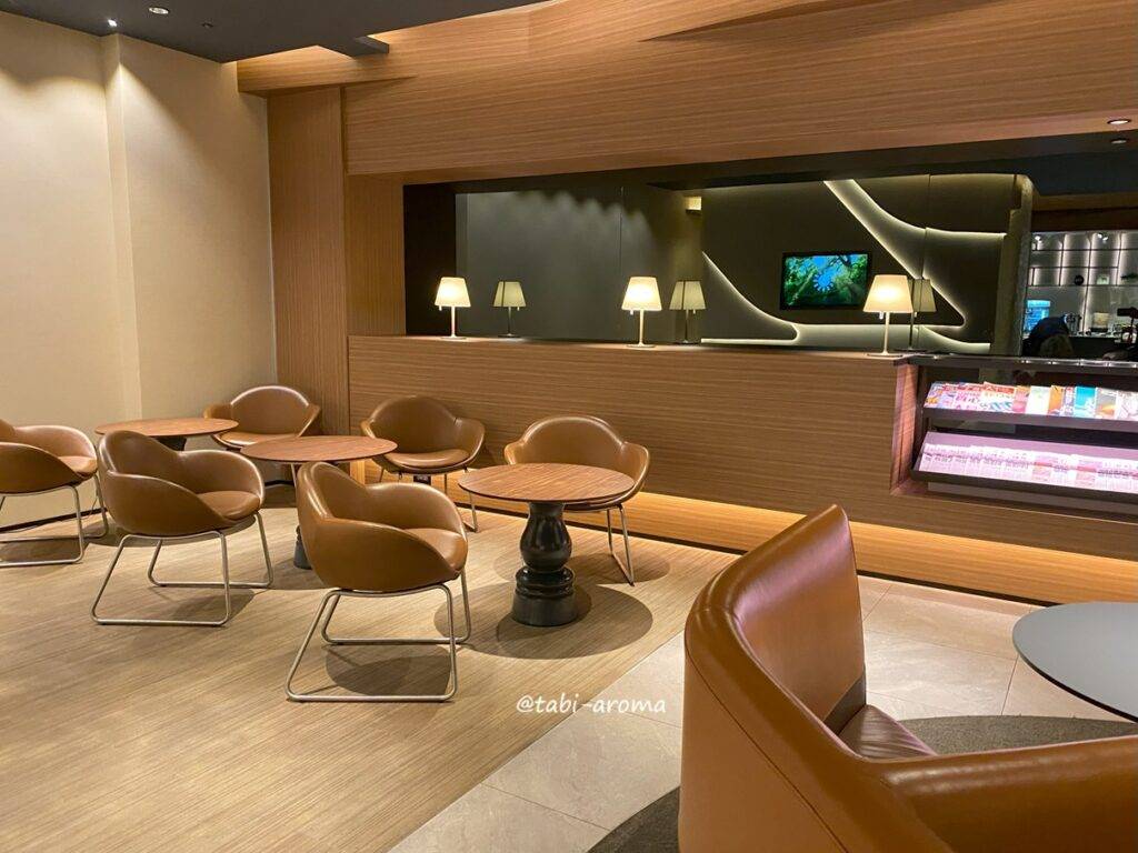 そばにあるキャセイパシフィック航空のラウンジに比べると、正直狭いです。