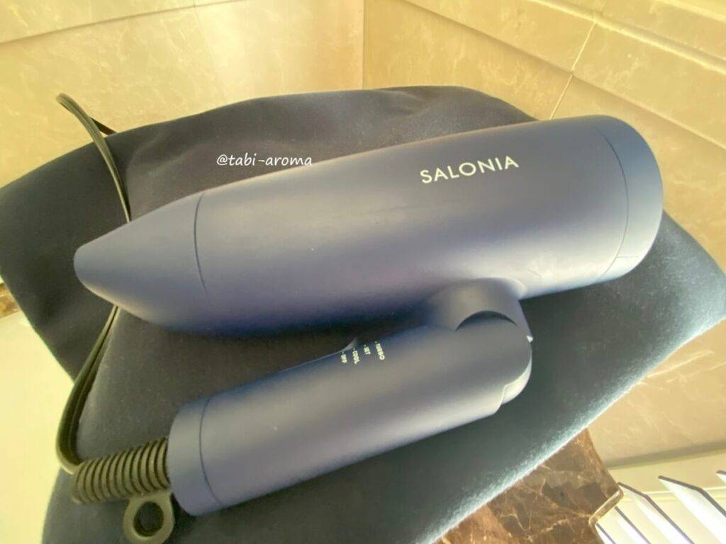 壁にはバスローブがかかっており、ドライヤーはSALONIAのものでした。