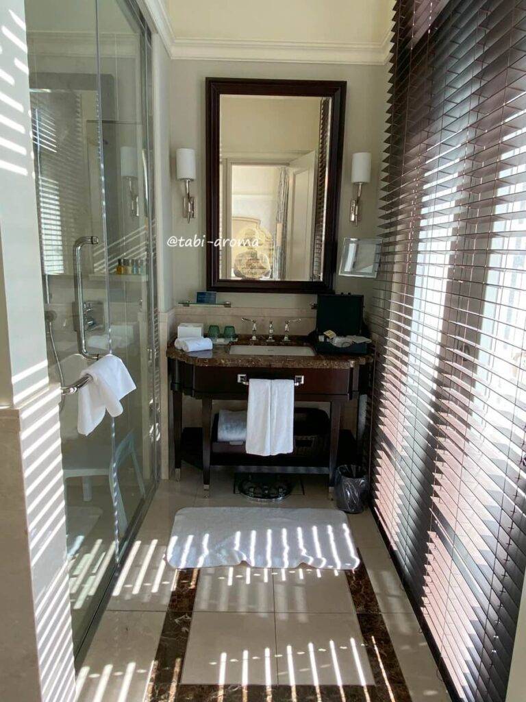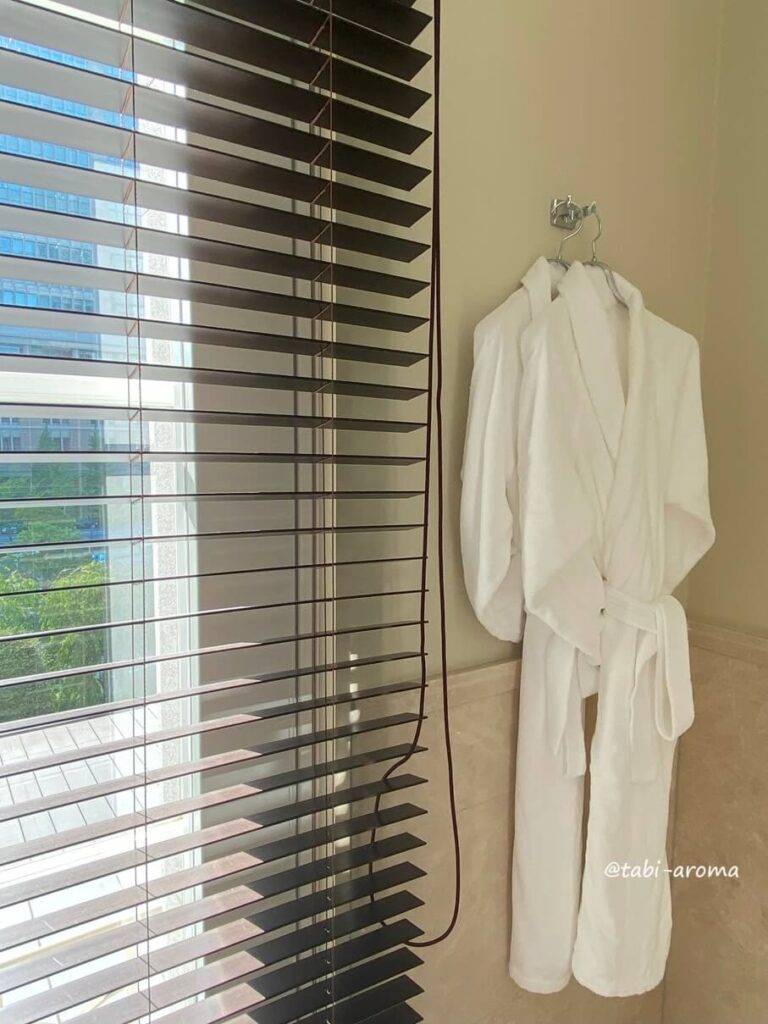 マジックミラーにはなっていませんので、利用時にはブラインドを下げますが、明り取り用の大きな窓があるのはいいですね。本当に気持ちのいいバスルームでした。