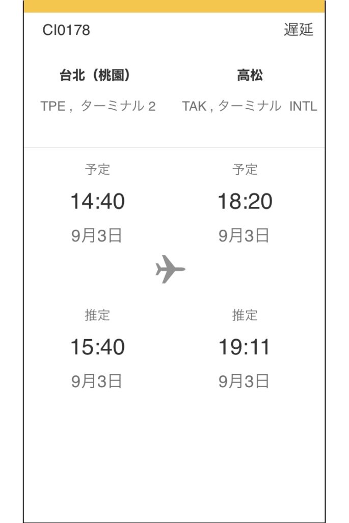 利用するチャイナエアラインの公式サイトには、出発前に、以下のような遅延・欠航情報がでていました。