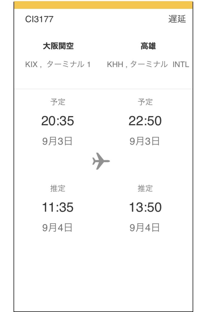 関空発の便だと次の日へのとなっていますが、遅延だと予約し直さなくてもいいので、乗客にとっては楽です。