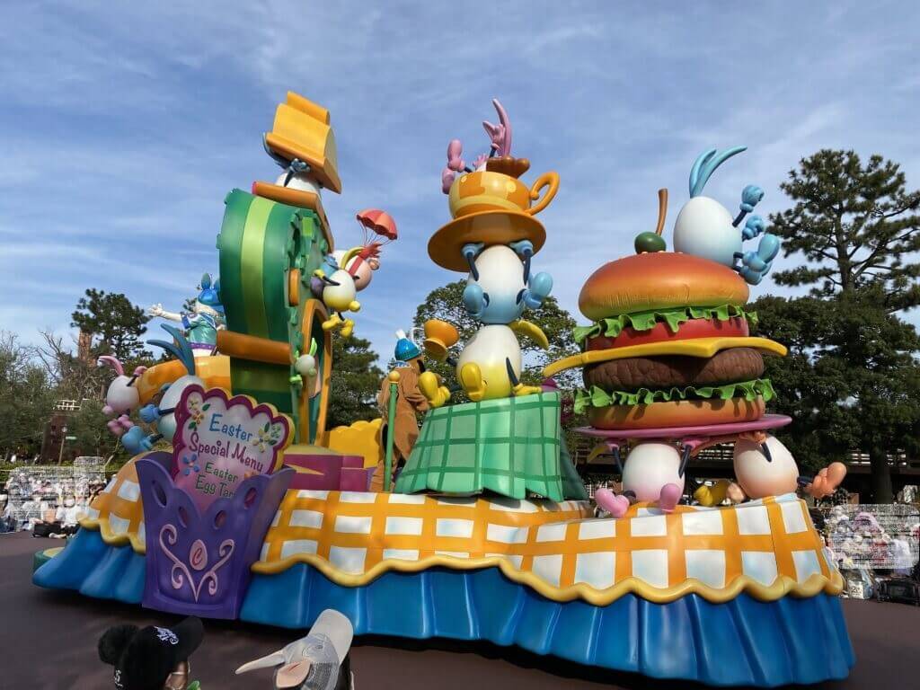 お目当ては、4月のパレード「うさたま大脱走!」と新作のディズニーフードです。「うさたま大脱走!」は、16時から始まるので、10時30分の時間指定パスポートでも十分に間に合いました。