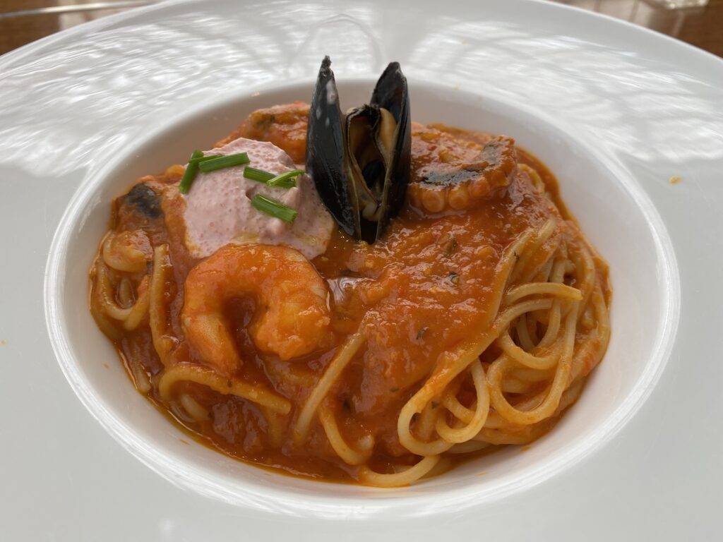 ・スパゲッティーニ・ペスカトーレ、たらこのチーズクリーム添え
