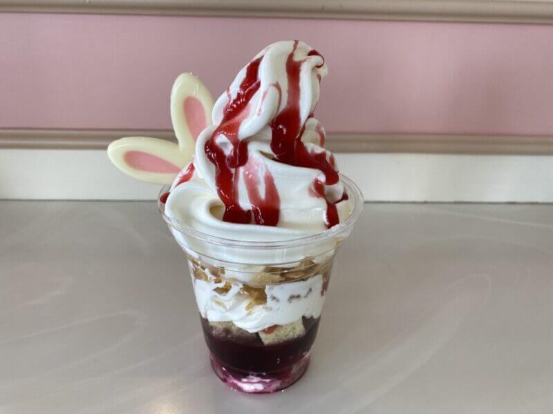 その上には、ラズベリーソースがかかったソフトクリームがのっていて、”うさたま”