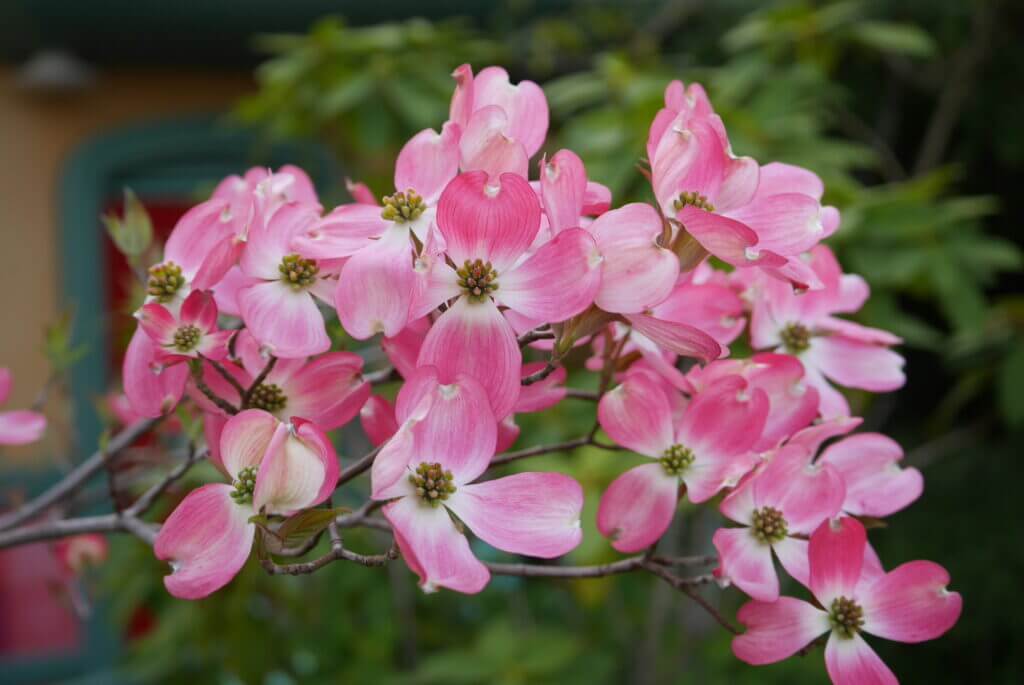 ピンクの花はハナミズキ。桜が終わったころから咲き始め、5月の半ばまで咲いているようです。このあと赤い実ができるので、秋には、また違った姿を楽しめそうです。ハナミズキは、トゥ―ンタウンで満開でした。
