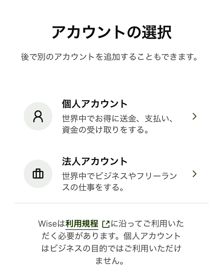 あとは、「個人アカウント」を選んであとは情報を入力していくだけです。