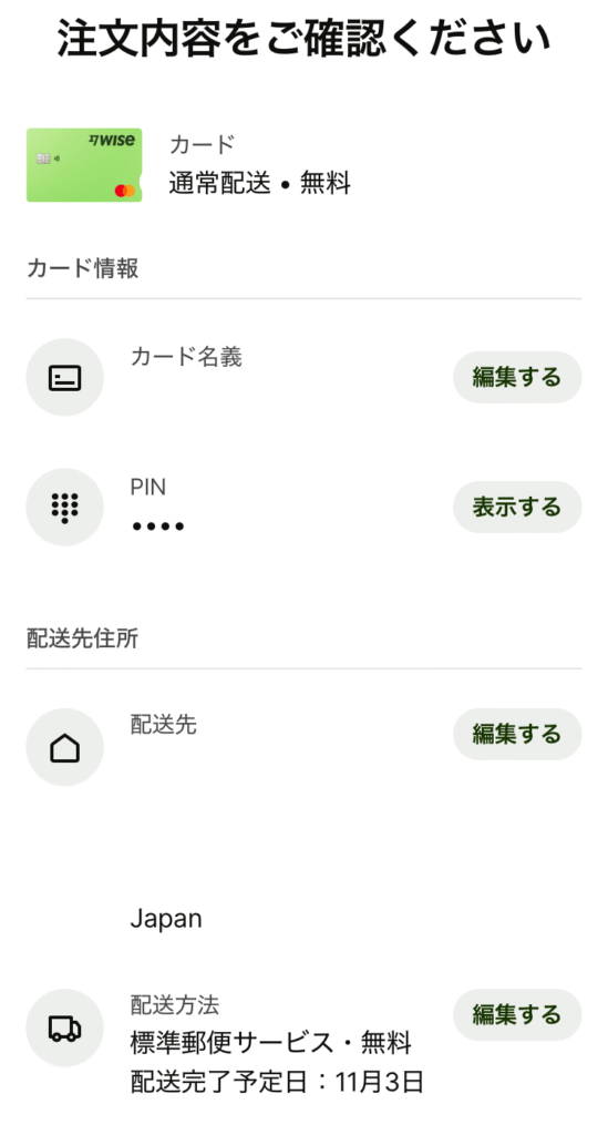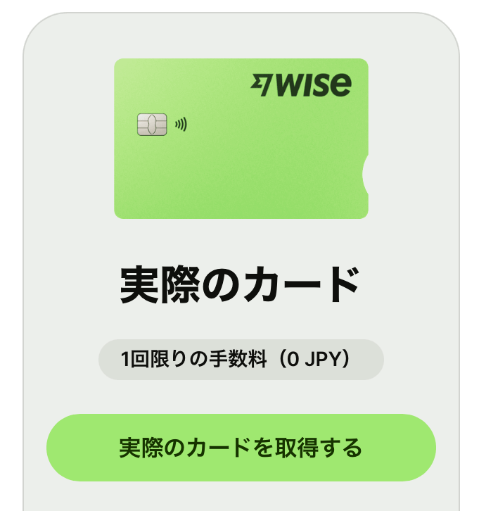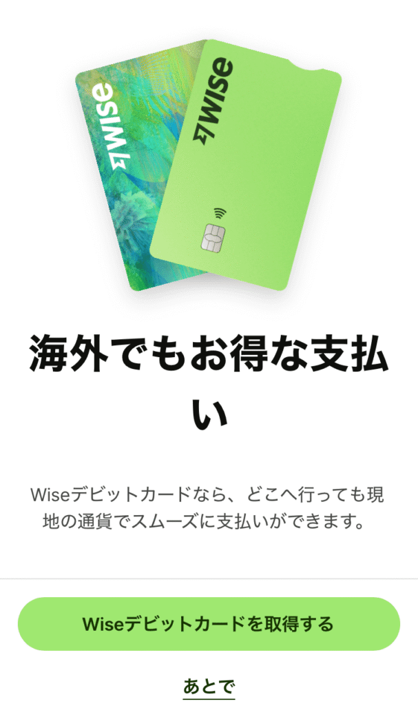 WISEデビットカードの取得は後でもできますが、届くまでに時間を要するため、一気にやっておくと便利です。