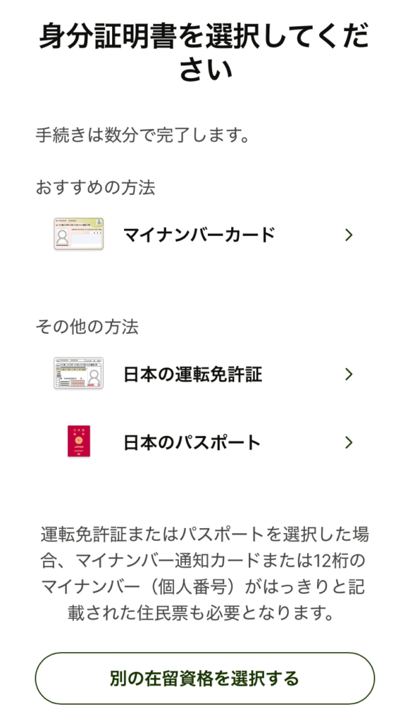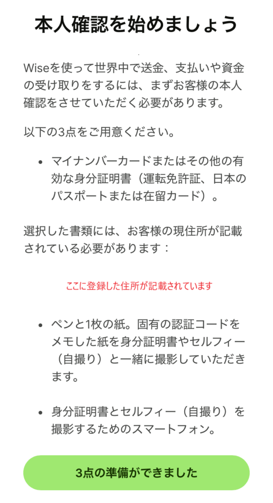 3点の準備ができ、国籍などを確認したら進めていきましょう。